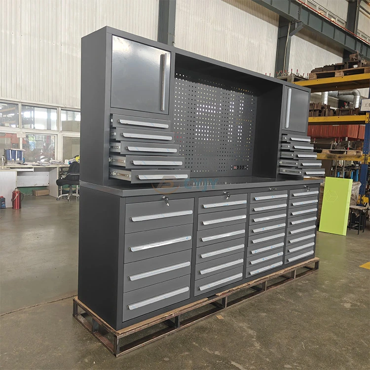 Tillverkad av 1,2 mm tjockt kallvalsat stål, är denna 100-tums verktygsarbetsbänk en professionell klass/garage arbetsbänk som är idealisk för tung bearbetning, fordonsreparation, träbearbetningsverkstäder och lagring. Vårt 100-tums verktygsarbetsbänk är perfekt för verkstadsbruk. Förfrågningar är välkomna!