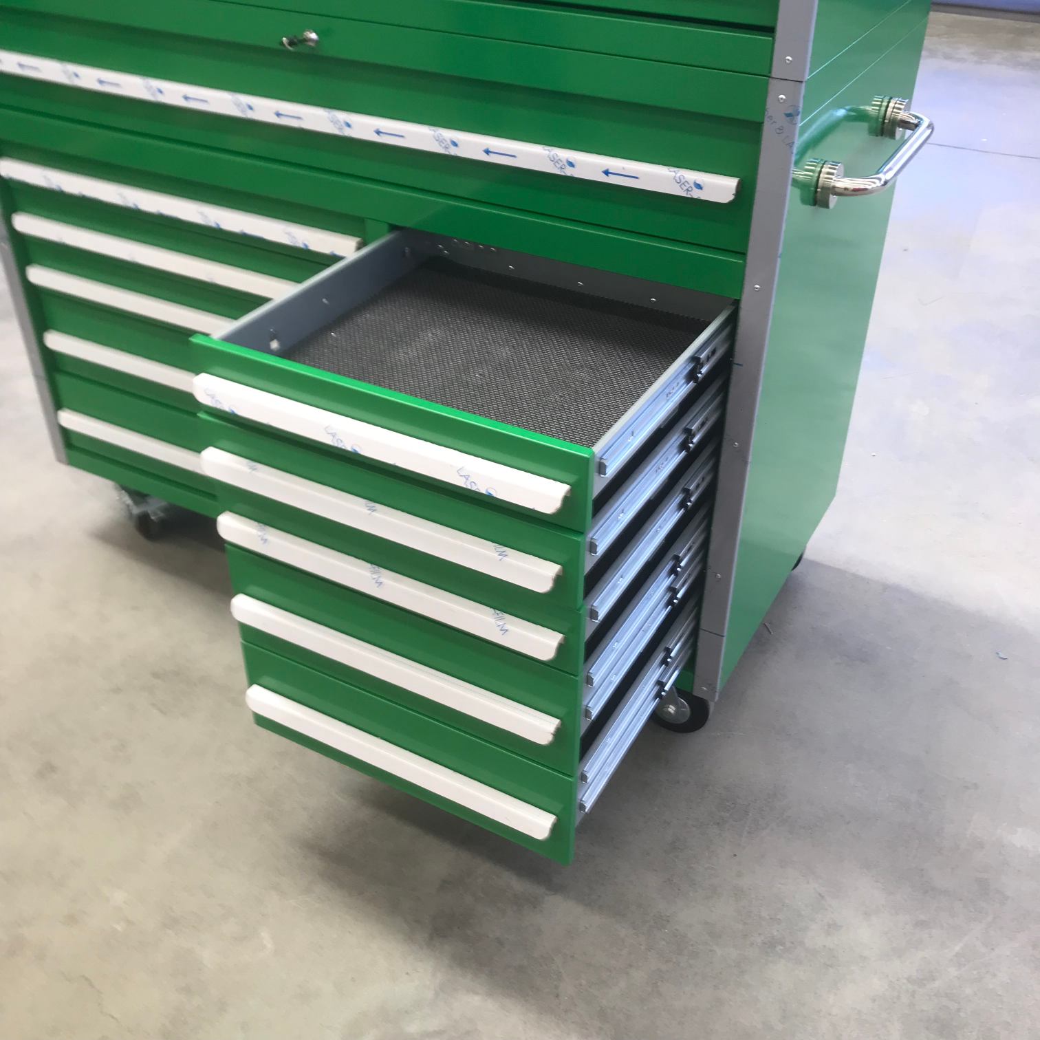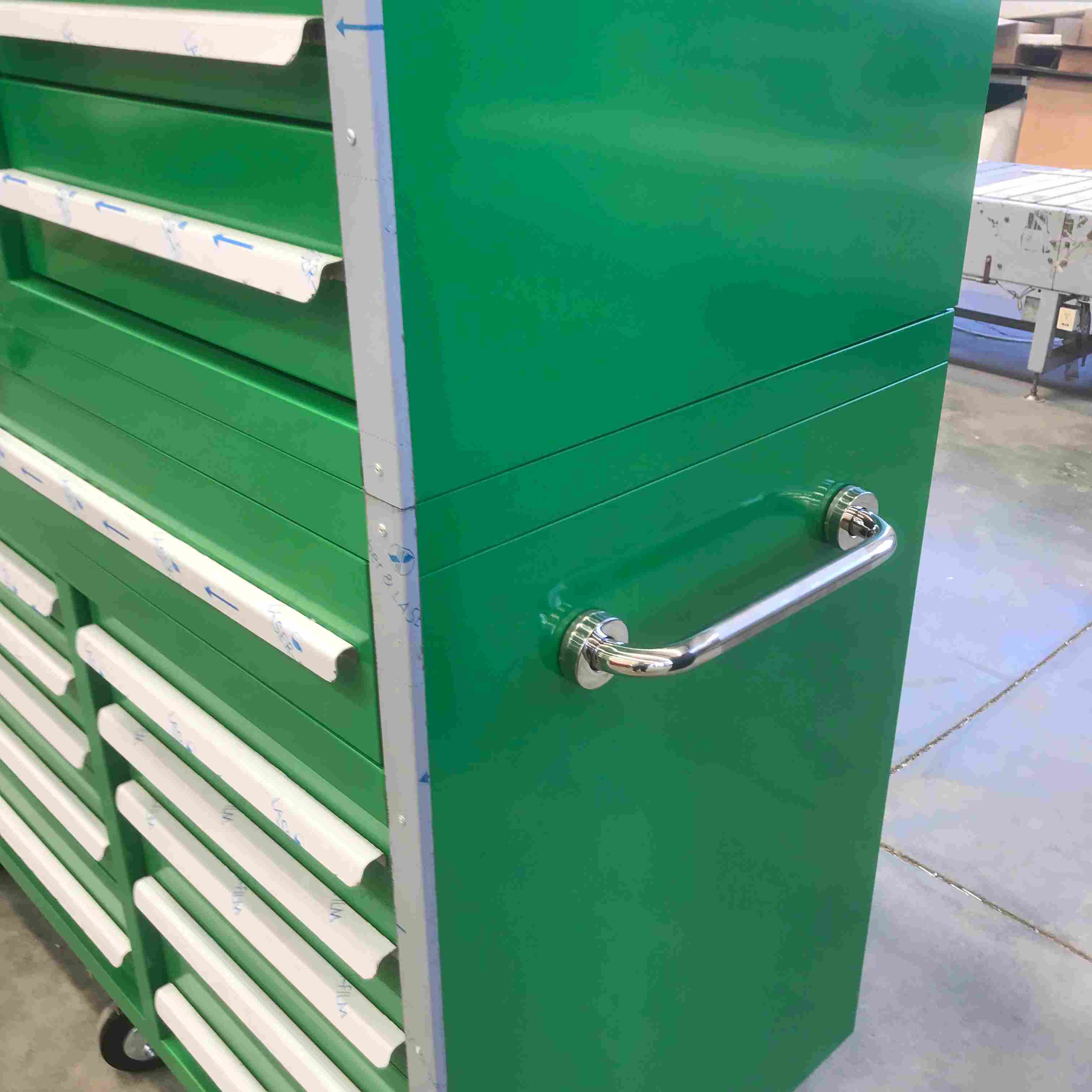 Överlägsen materialkvalitet: Kroppen av kallvalsad rulllagringsskåp är gjord av förtjockad kallrullad stålplatta, med utmärkt hårdhet och korrosionsmotstånd mot att motstå långvarig användning i hårda miljöer.