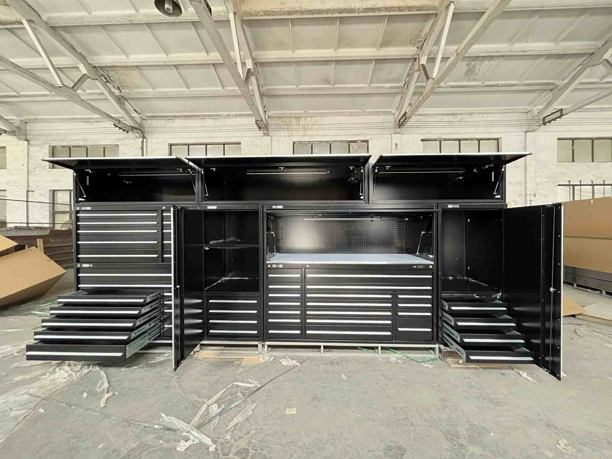 Modulgarageverktygsskåpet är ett verktygslagringssystem som består av flera oberoende moduler. Varje modul har specifika funktioner och lagringsutrymmen, till exempel lådmoduler för lagring av små verktyg och skåpdörrmoduler för bostäder stora verktyg eller utrustning. Användare kan fritt kombinera dessa moduler baserat på deras faktiska behov för att skapa ett personligt verktygslagringssystem. Jämfört med traditionella integrerade verktygsskåp erbjuder det större flexibilitet och anpassningsförmåga, vilket möjliggör justeringar enligt förändringar i mängden och typer av verktyg, vilket verkligen uppnår personlig anpassning.