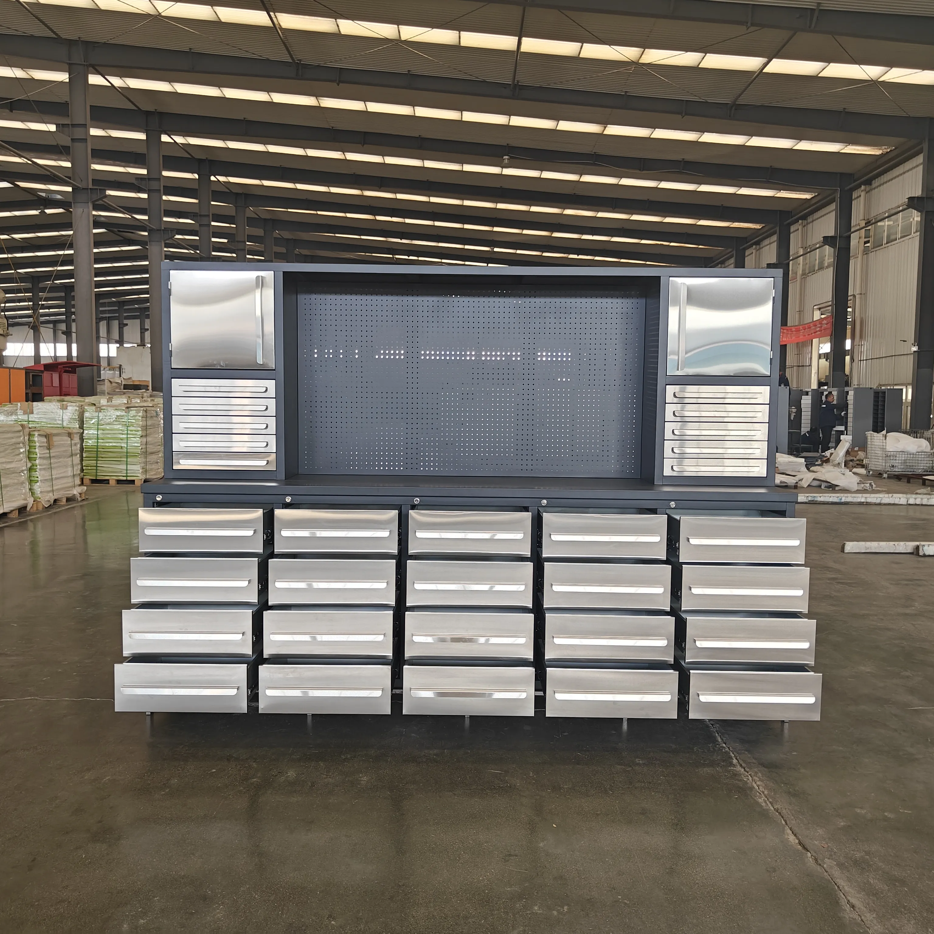 Hållbara: Verktygsbänkar är vanligtvis tillverkade av höghållfast material som stål eller tungt trä för att säkerställa att de tål vikten av tunga verktyg och material och har god slitage och korrosionsmotstånd för att förlänga livslängden.
