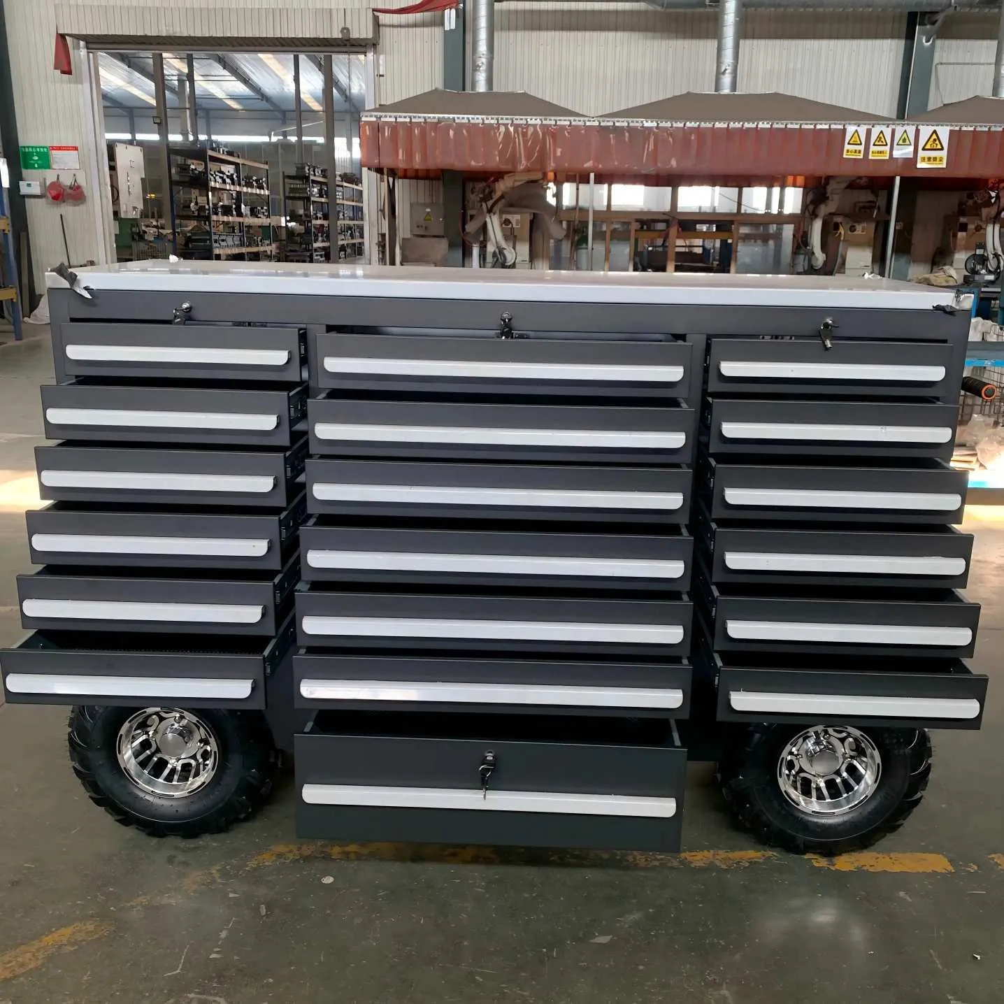 På platser som bilverkstad och mekaniska bearbetningsanläggningar kan underhållstekniker lagra olika professionella verktyg i OEM Roller Garage Tool Bröstlådor i kategorier, underlätta snabbåtkomst under underhållsverksamheten och förbättra arbetseffektiviteten. Den praktiska rörlighetsfunktionen gör att OEM Roller Garage Tool Chest kan flexibelt flyttas till arbetsområdet med teknikern i verkstaden.