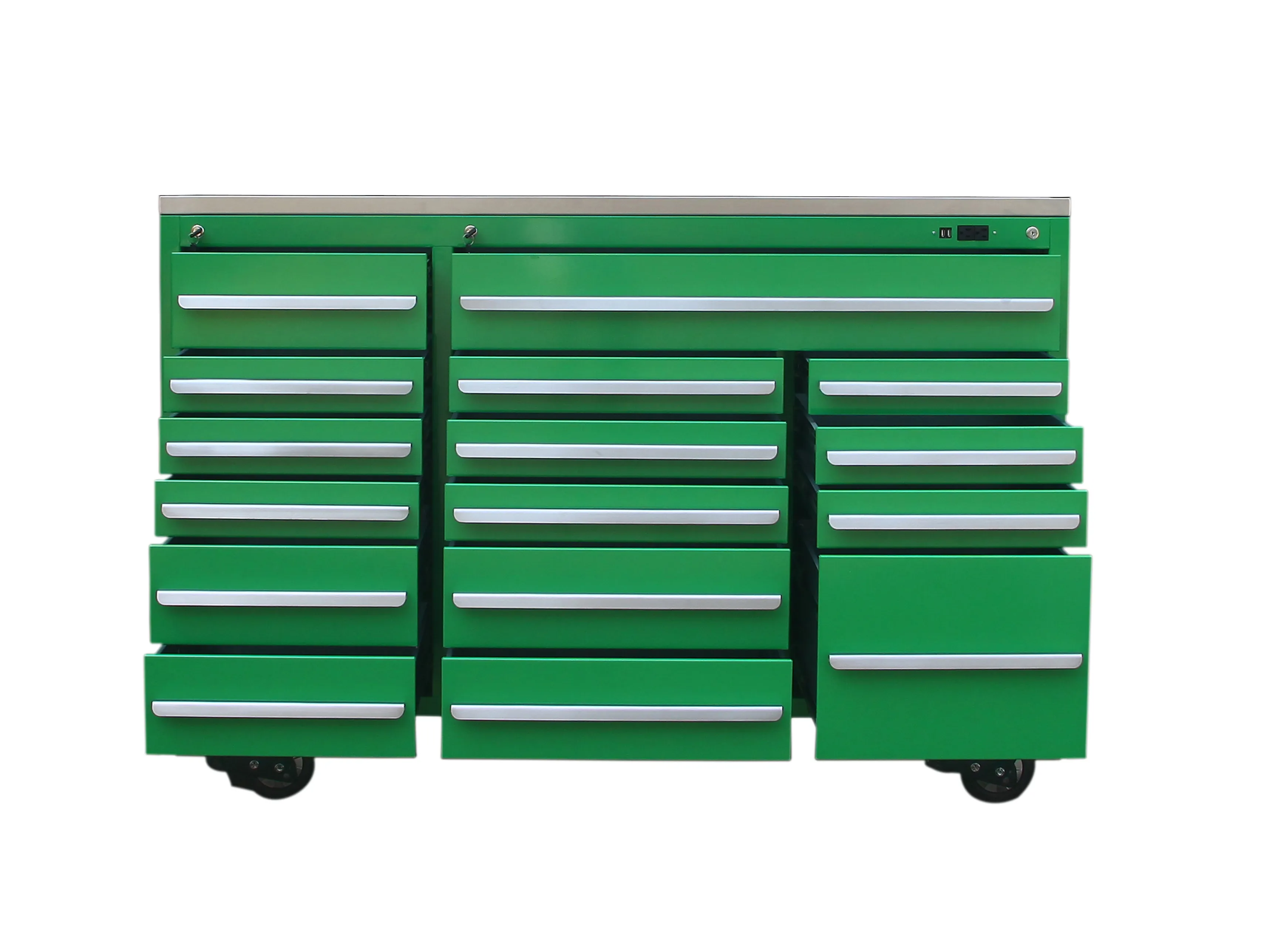 Samtidigt gör den humaniserade zonindelningsdesignen att olika verktyg kan placeras i kategorier och tydligt synliga med en blick, vilket avsevärt minskar tiden för att leta efter verktyg och avsevärt förbättrar arbetseffektiviteten. Vad som är mer anmärkningsvärt är att den har en lastkapacitet på upp till 1000 kg. Oavsett om det är tunga mekaniska verktyg eller ett stort antal tillbehör, kan den enkelt ta emot dem och tillgodose lagringsbehoven i olika scenarier.